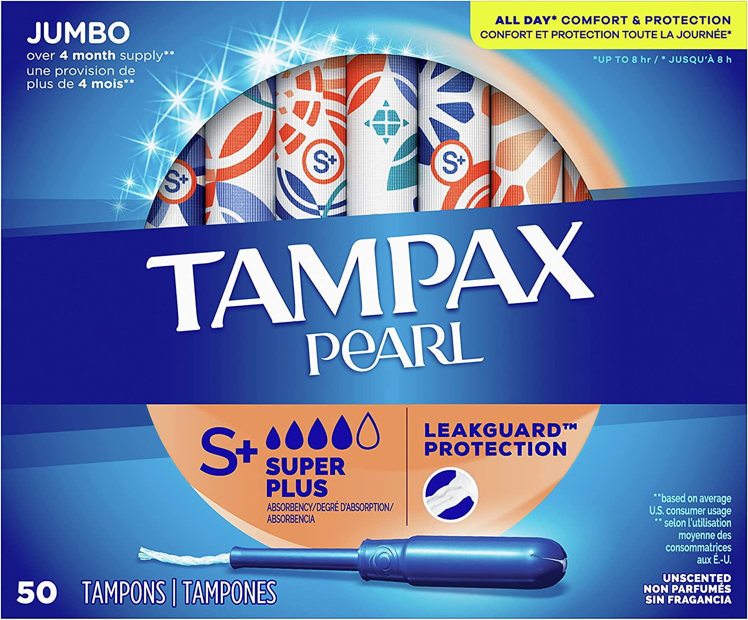 Tampax Pearl Tampons Super Plus Absorbency With Bpa Free Plastic Applicator And Leakguard Braid Unscented 50 Count Pack Of 4 200 Total Count Walmart Com